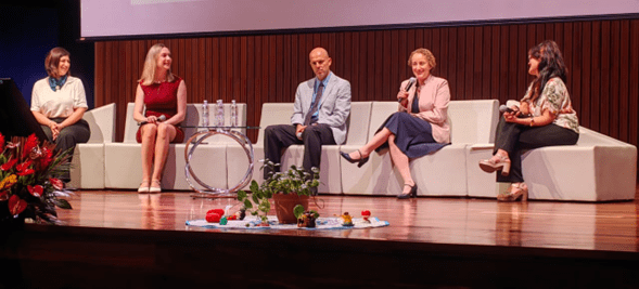La Licda Angélica Castro Morera, jefa administrativa del IICE, representó al sector administrativo en el panel “Liderar para el bienestar: experiencias y aprendizaje desde la comunidad universitaria” de la UCR, compartiendo junto a un grupo de personas destacadas en la universidad: Dra. Leonora De Lemos Medina, Dra. Carolina Santamaría Ulloa y el Dr. Javier Quesada Espinoza.